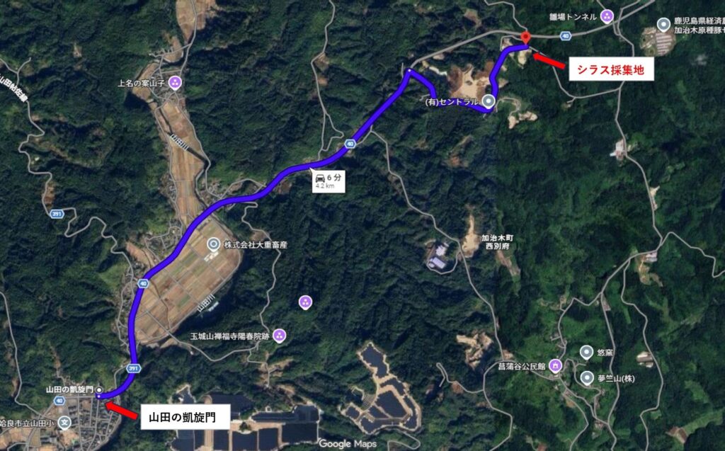 シラス採集地は「山田の凱旋門」から山道を4kmほど登ります。
